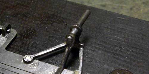 The centre spine is made up using .062 wire (1.6mm), and 4 eyelets. Ensure the wire can rotate before you solder them in. Once in place and the wire and motor box eyelets are soldered check the spine wire is level. The wire is soldered to the eyelets in the motor box.