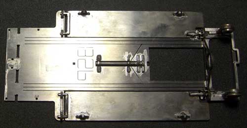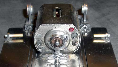 Using some 'top hats' or brass tube as a retainer for the front wheels finish the front axle. Add the lead wire keeper and give the chassis a good scrub with soap. The car is very light, so will need some additional weight. Lead placement will depend on driver preference and track.